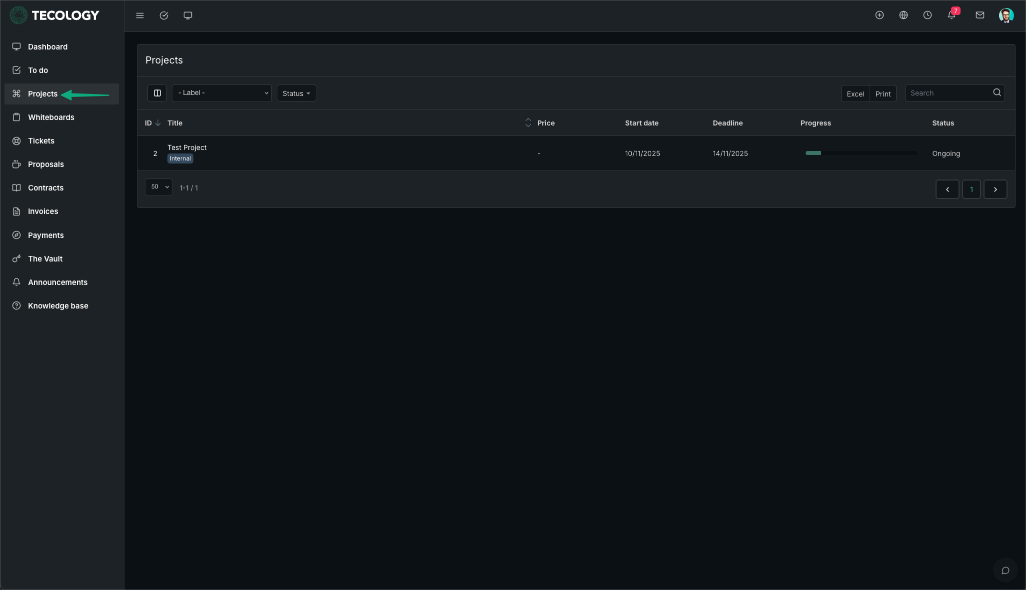 Tecology Workspace allows you to view projects that are currently active, ongoing, or recently completed. Projects provide visibility into structured work, including both time-bound projects and ongoing services such as monthly retainers or managed IT support plans.