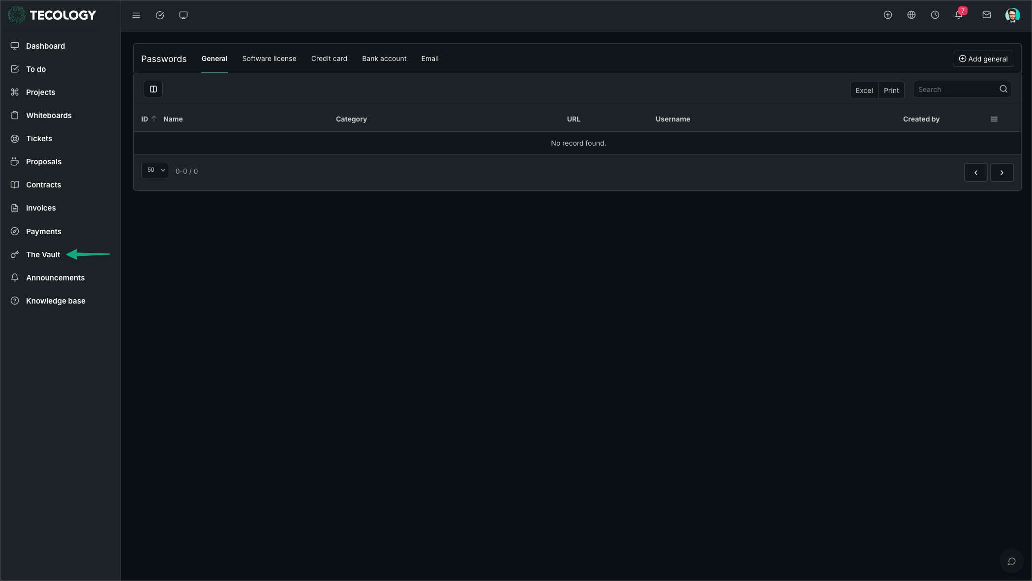 Clients can add credentials to the Vault and share them with specific Tecology team members as needed.