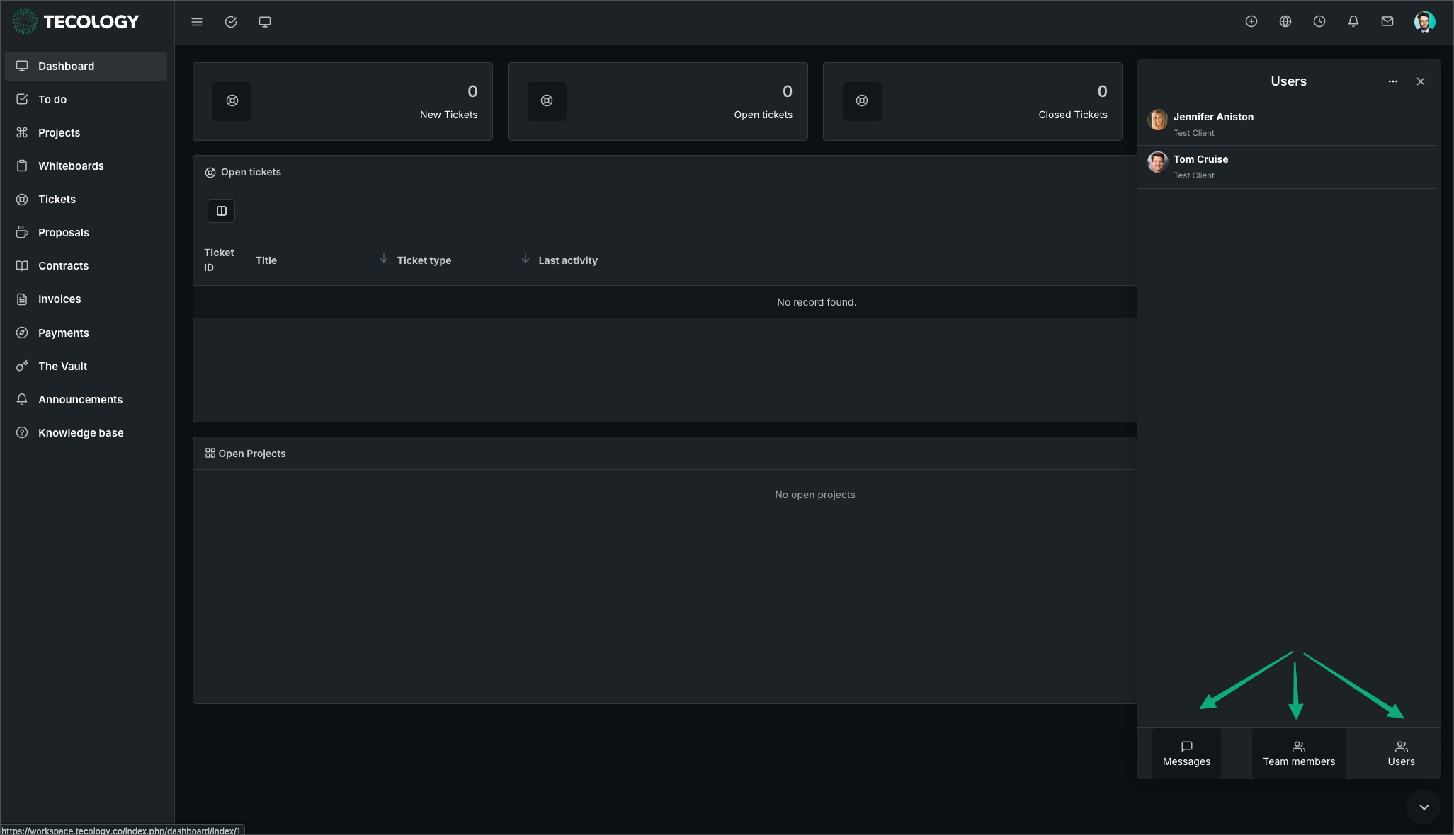 Live Chat in Tecology Workspace allows you to send quick messages to your colleagues and to the Tecology team. It’s designed for short, informal communication and quick clarifications while you’re working in the portal.