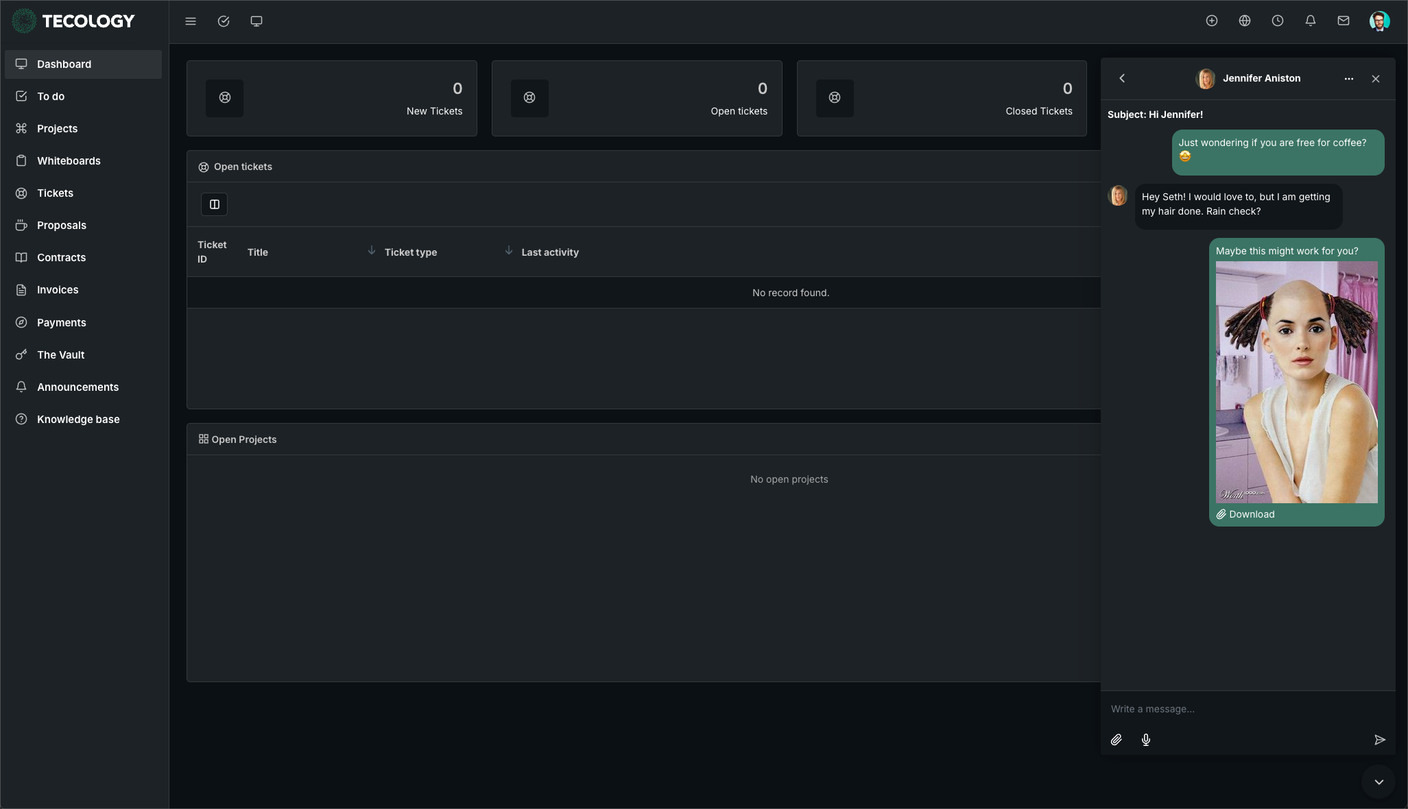It’s a convenient way to communicate without leaving Tecology Workspace.
