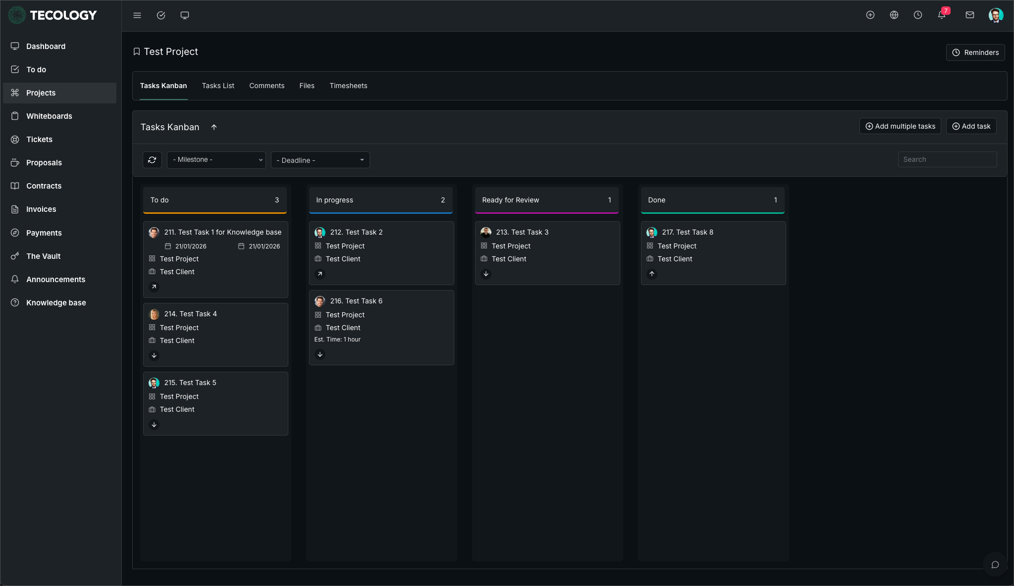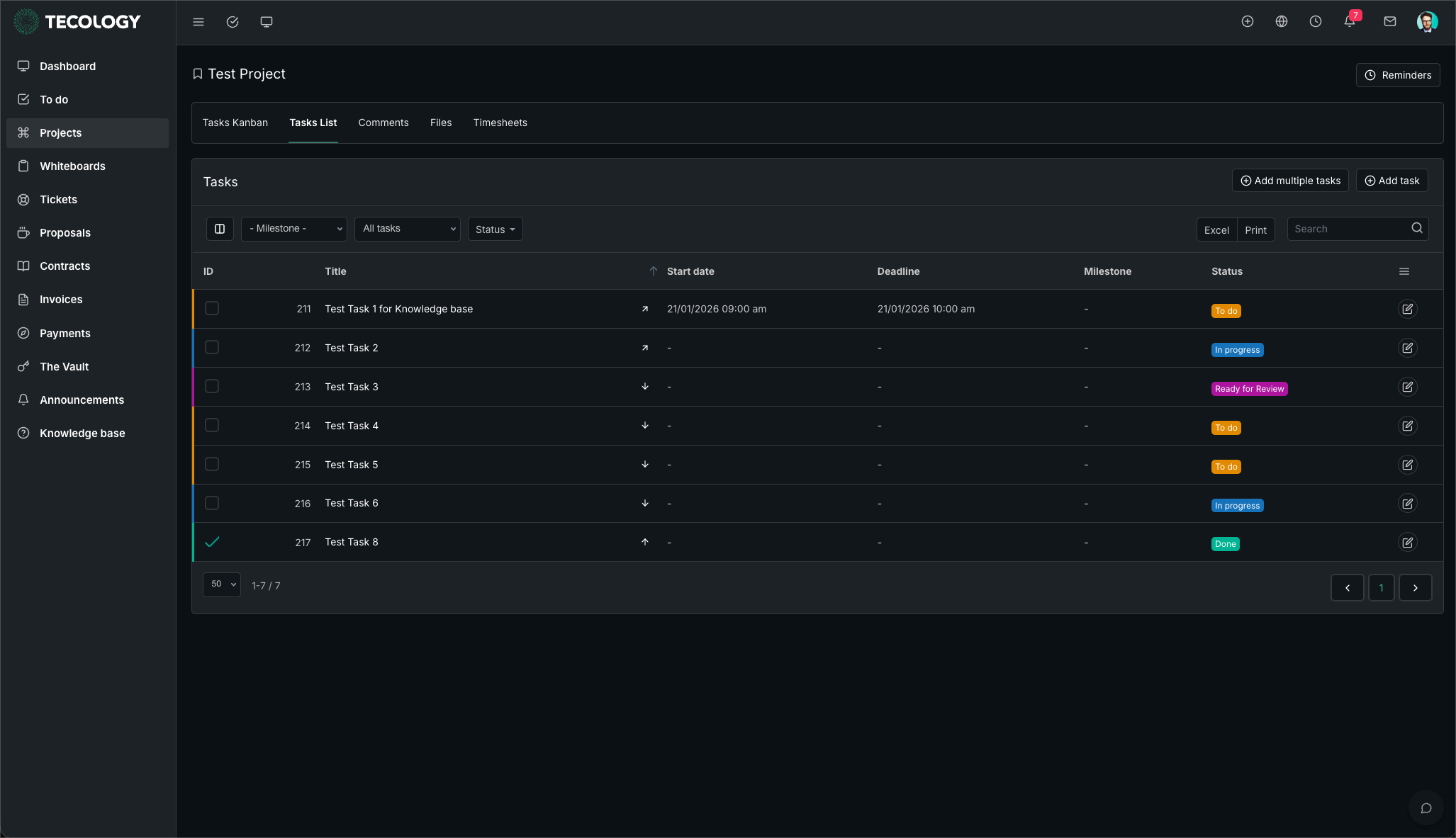 Tasks are used within projects to organise, assign, and track individual pieces of work. They allow both clients and the Tecology team to collaborate on agreed actions in a structured and transparent way.