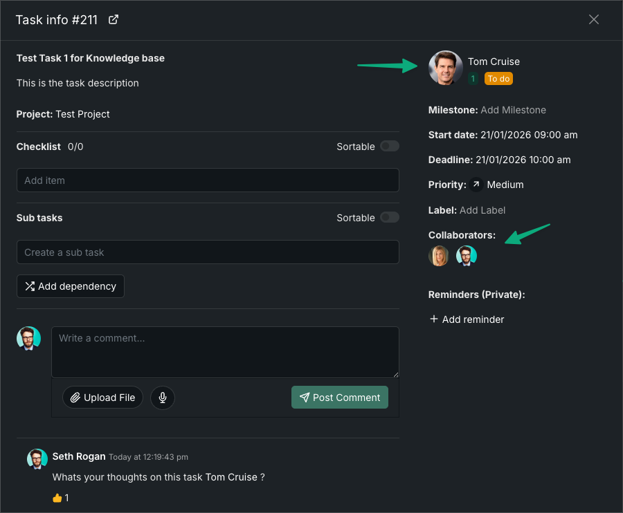 Collaborators can also be added so multiple people can follow progress and contribute where needed.