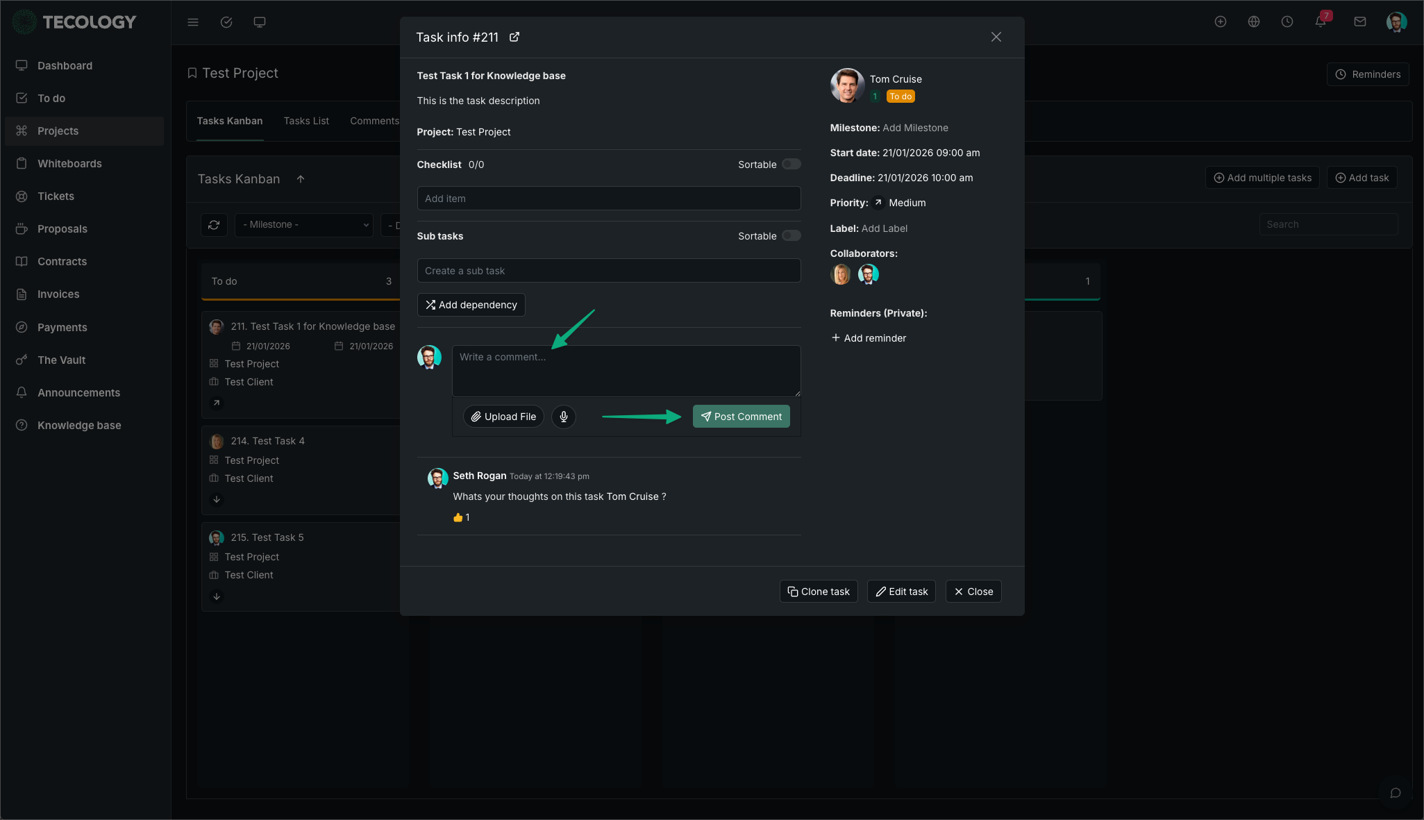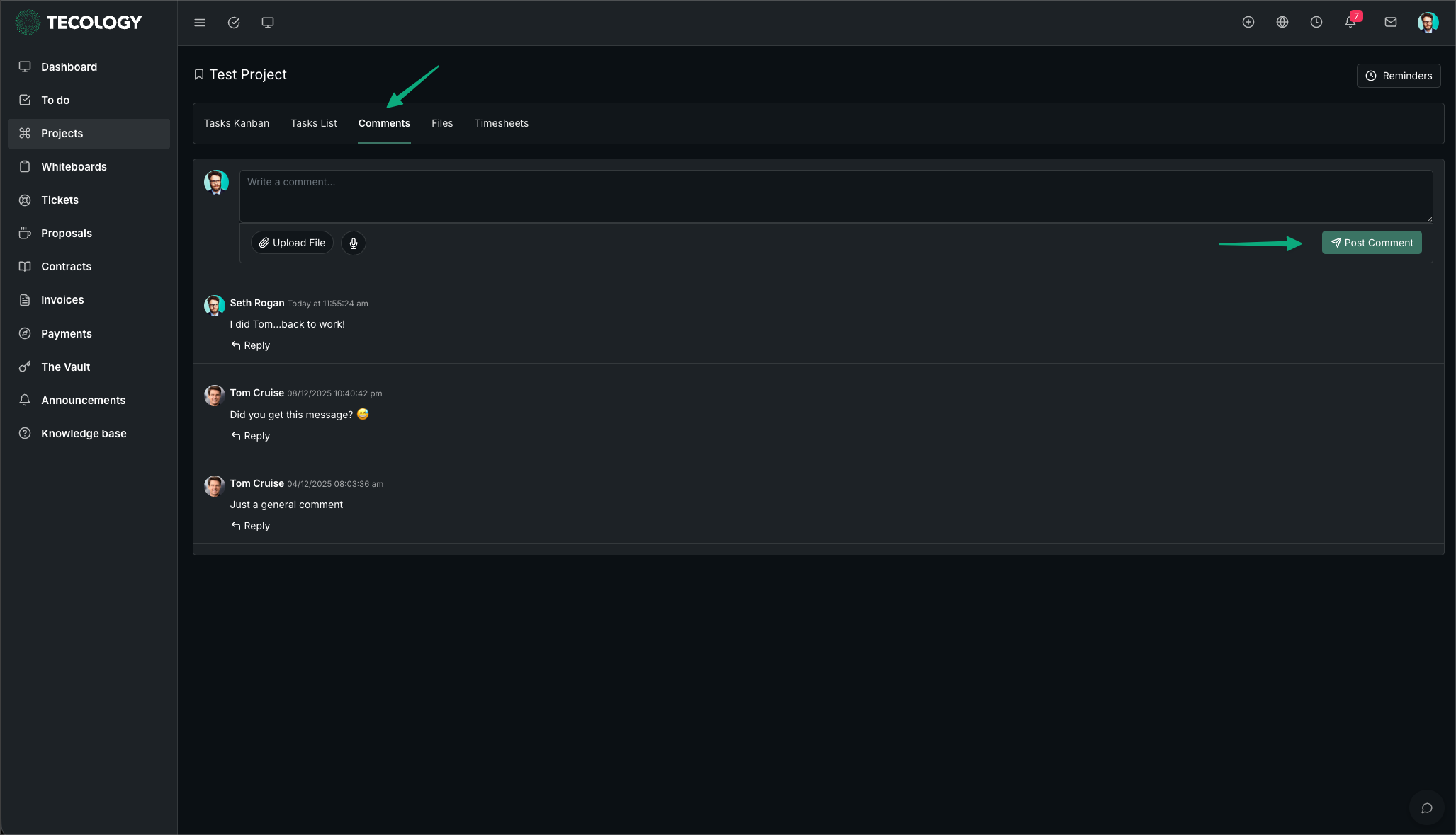 Comments allow clients and the Tecology team to communicate without relying on email or live chat.