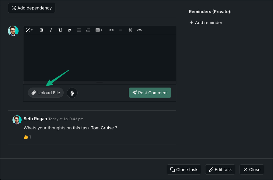 Comments are used to communicate directly within projects and tasks. They help keep discussions, decisions, and files tied to the work they relate to.